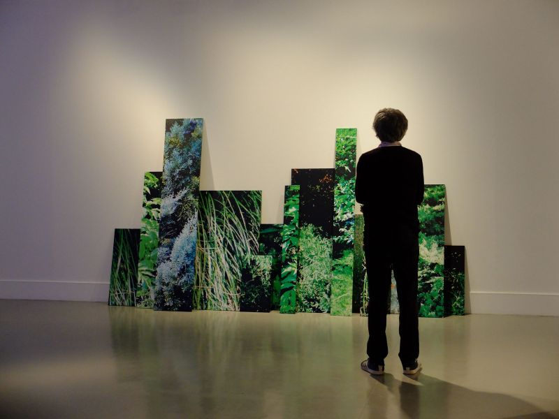 La pérennité fragile et précaire de l’installation des images, à la fois étranges et familières, dresse une forme d’exposition transformée faite de séquences et montages d’intelligibilité à découvrir : un imaginaire d’images. Souvent chipées à des réalités banales comme un champ de fleurs sauvages ou une plante d’appartement dans son pot, Béatrice Utrilla fait de ce butin d’images un jardin intérieur. (Gérard Tiné, extrait)