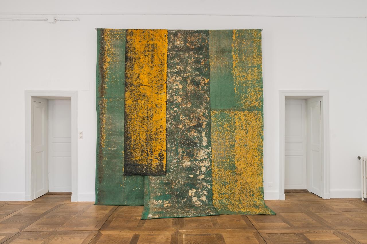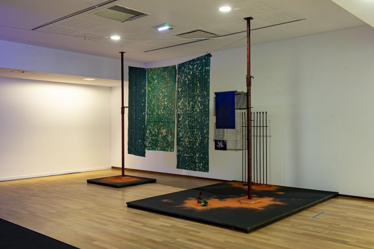 Guilhem Roubichou, Brise Vue, 2022, brise-vues, mousse végétale, vue de l’exposition collective Résidence Secondaire, Memento, Espace départemental d’art contemporain, Auch