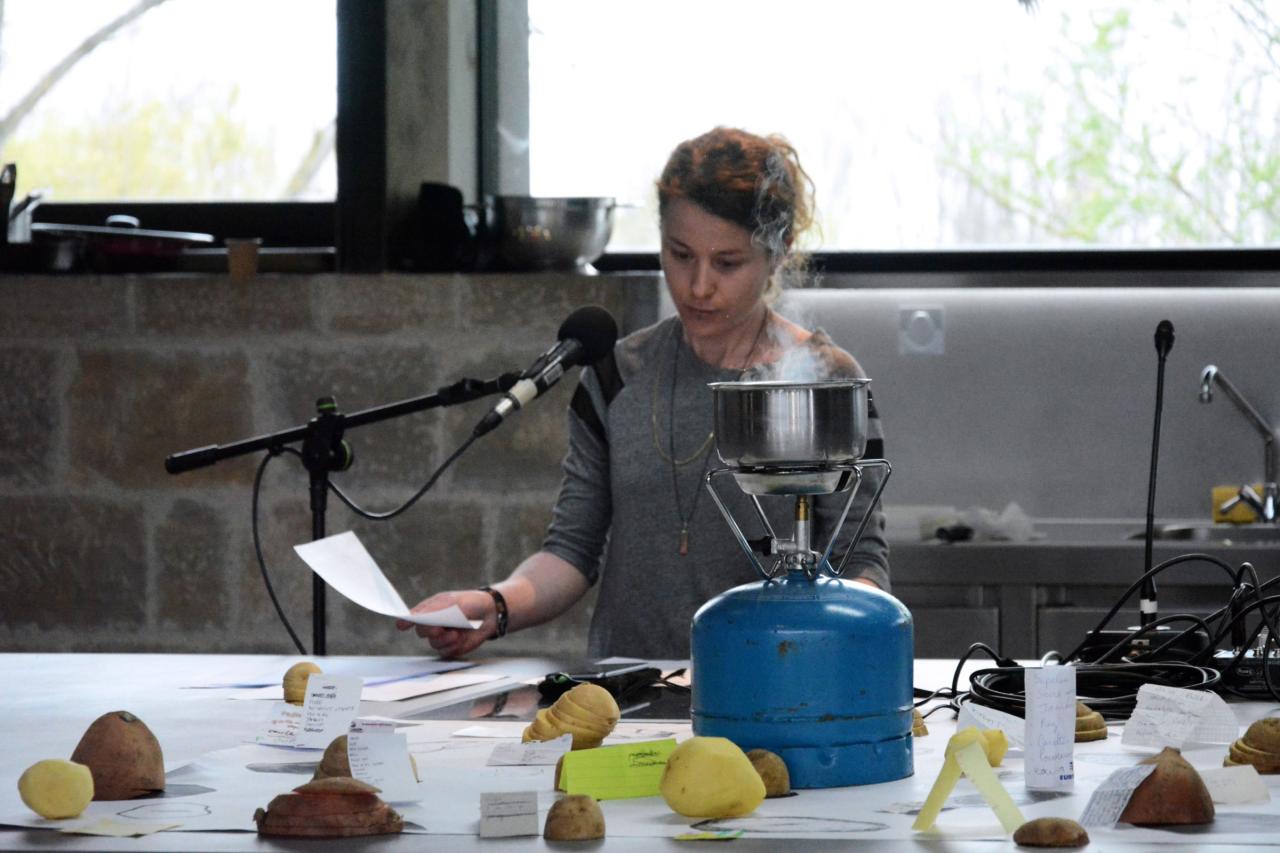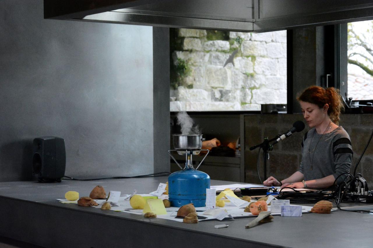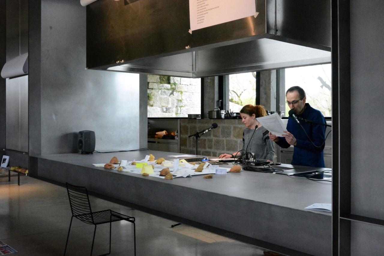 À voir la PDT, 2019, duo Fo[…]nd Vo[…]x (Julie Saclier & Benoît Sanfourche), lecture hybride, La cuisine, centre d’art et de design, Nègrepelisse, photo Corinne Fourcade
