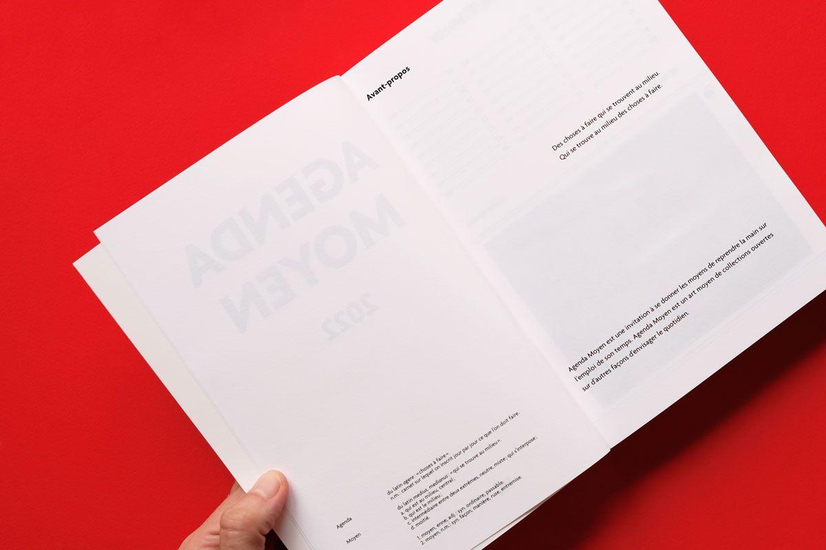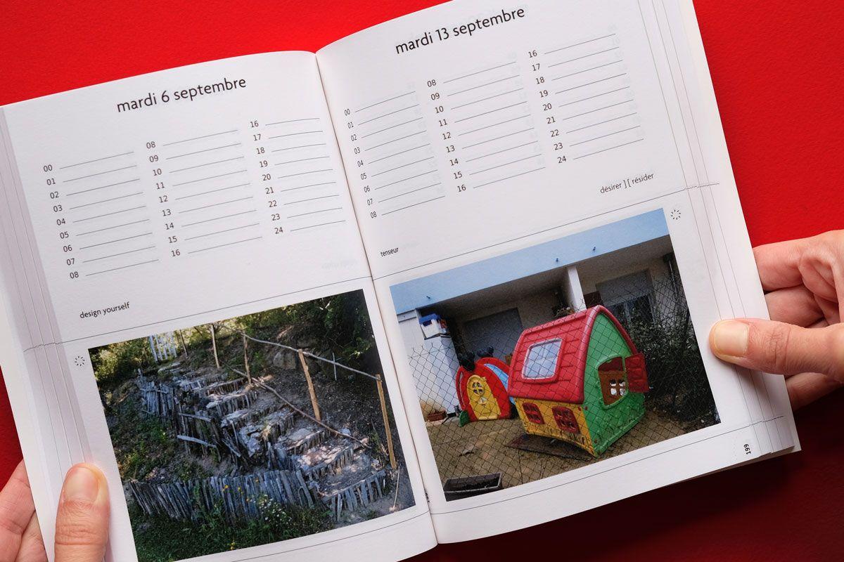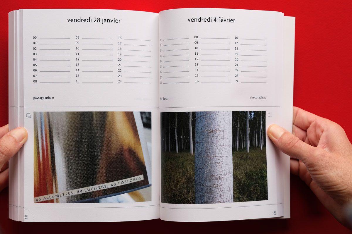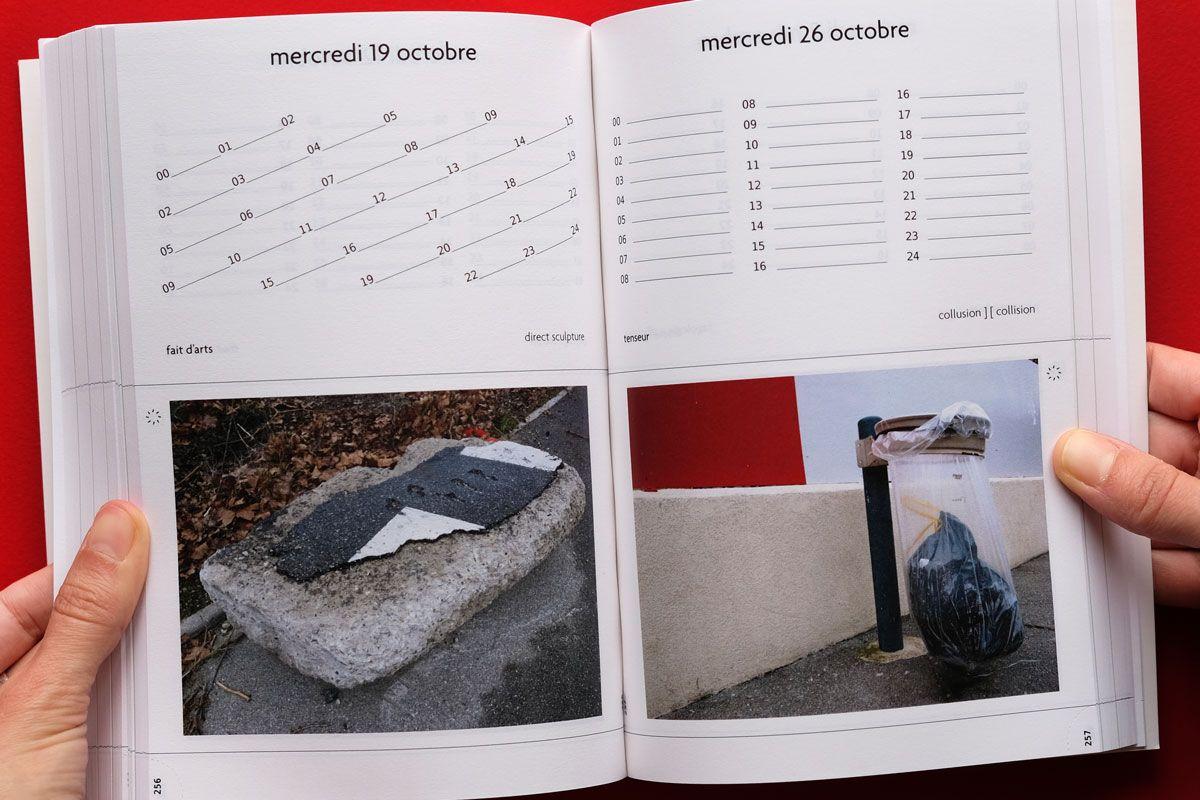 Cette édition a son origine dans le constat, fait par les artistes, qu’aucun agenda du commerce ne correspond réellement au travail de création, celui-ci pouvant s’étendre de manière égale 7 jours sur 7 et 24 heures sur 24. À la manière d’un almanach, chaque pages de l’agenda est accompagnée par des photographies réalisées par les artistes pendant le temps du confinement. Des instantanés d’objets ou d’événements capturés lors de leurs sorties autorisées, sorte de ready-mades témoins d’un quotidien troublé.