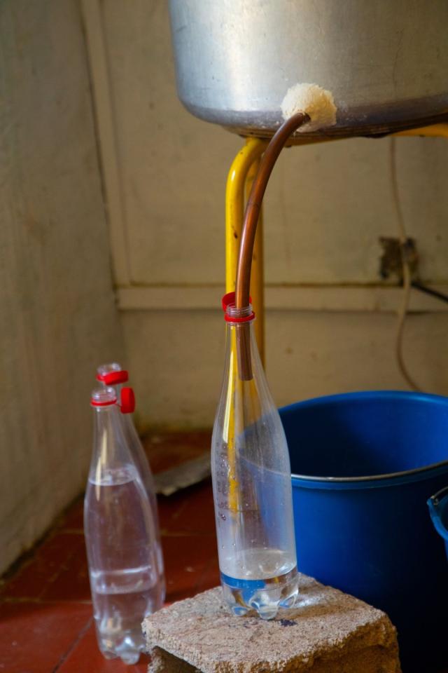 Pressure-cooker, gaz, hosepipes, copper, aluminium pot, plastic containers, fermented Capri-sun®