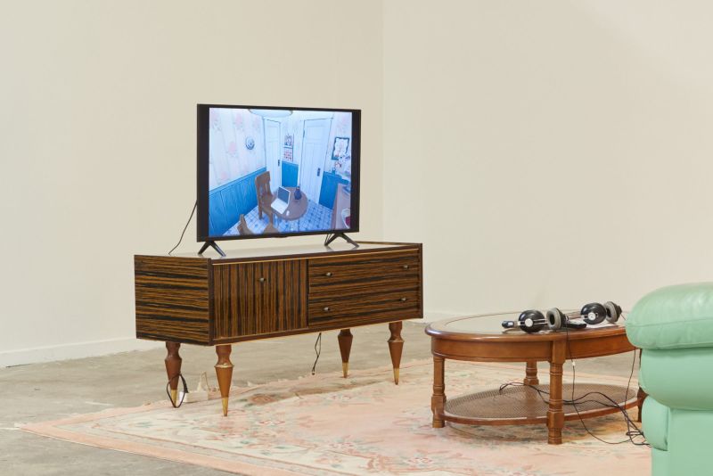 Maxime Callen se remémore son enfance passée à jouer dans un quartier panoptique, occupé par le bloc maison-garage de ses grands-parents en son centre. Il accompagne sa lecture d’une exploration des lieux reproduits dans le jeu vidéo Les Sims. Les mouvements lisses de la caméra du jeu mettent en valeur le rôle de cette résidence fermée sur elle-même dans les drames invraisemblables qui s’y jouent.