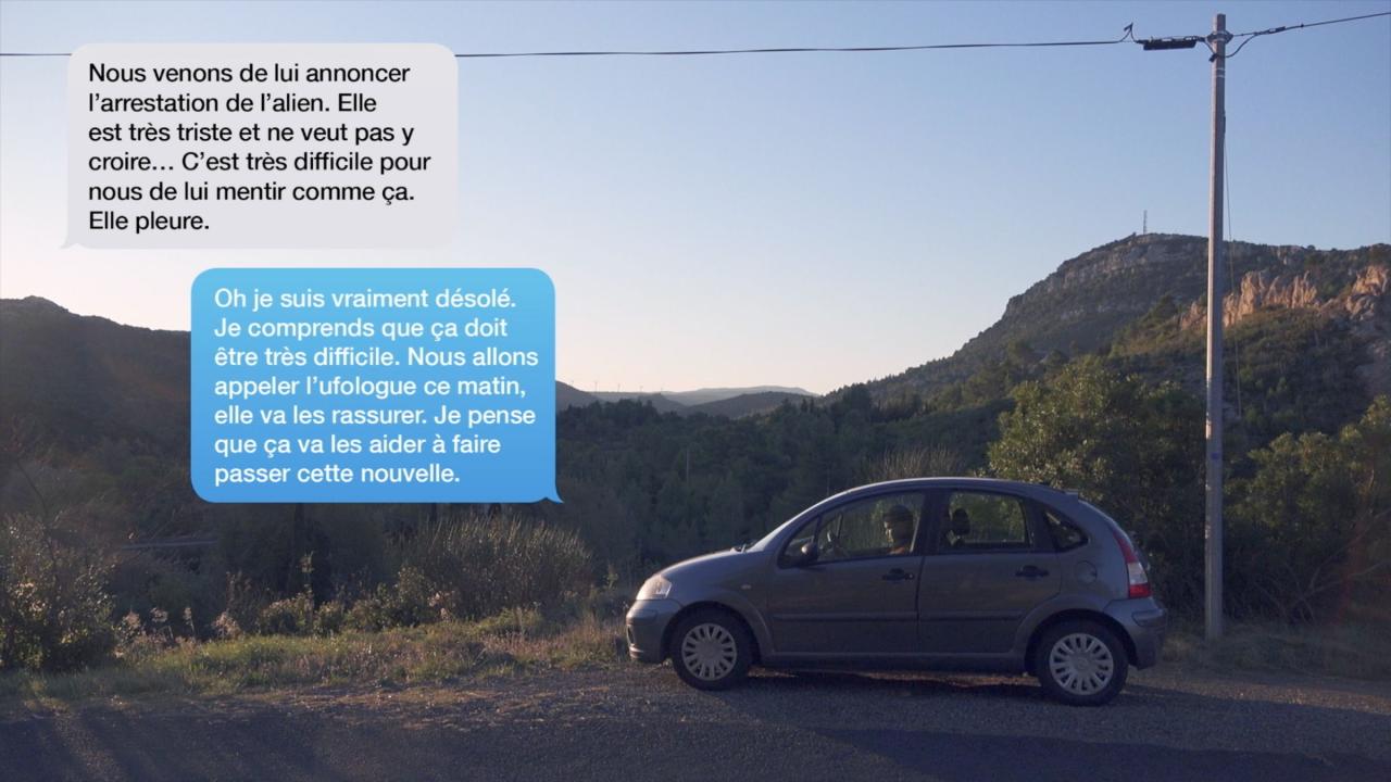 Si la thématique de l’immigration sous-tend l’histoire de l’alien, l’objet du film portera sur le mélange d’éléments réels et fictionnés constitutifs du jeu de rôle. Ici employé comme une mise en abime, le genre du faux documentaire permettra aux spectateurs de faire l’expérience de ce trouble afin de mieux comprendre comment les enfants ont accepté les grosses ficelles de cette histoire, plus par désir d’y croire que par naïveté. Le film renverra ainsi le public à lui-même, faisant le choix d’accepter la supercherie du documenteur à travers un pacte de lecture conclu avec le réalisateur.