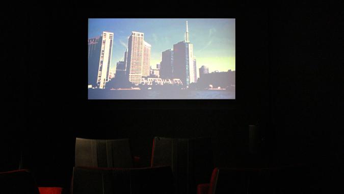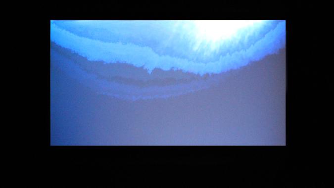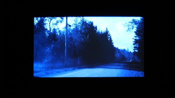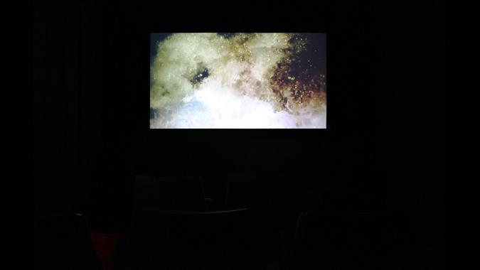 Nature géographique dont on mesure l’absence de balises, devant la difficulté à identifier les lieux filmés. Érodés par la pixellisation, ils sont plongés dans un bain de nuit américaine, procédé daté au double mérite de faire disparaître des éléments et d’en révéler d’autres. Ce retraitement systématique des images intervient sur des sites eux-mêmes artificiels : un simulateur de tempête ; un terrain de golf synthétique ; un parc aquatique. L’alternance de paysages parcourus et de paysages contemplés, de trajets vers la droite et vers la gauche, est le signe d’une chorégraphie manigancée non pour se souvenir de toponymie mais de mouvement.