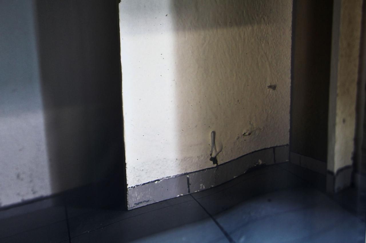 Survival, 2017, installation, prints on tarpaulin, window sticker prints on glass, wood, metal, painting and light systems out of use, details