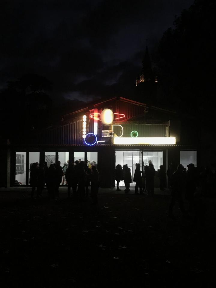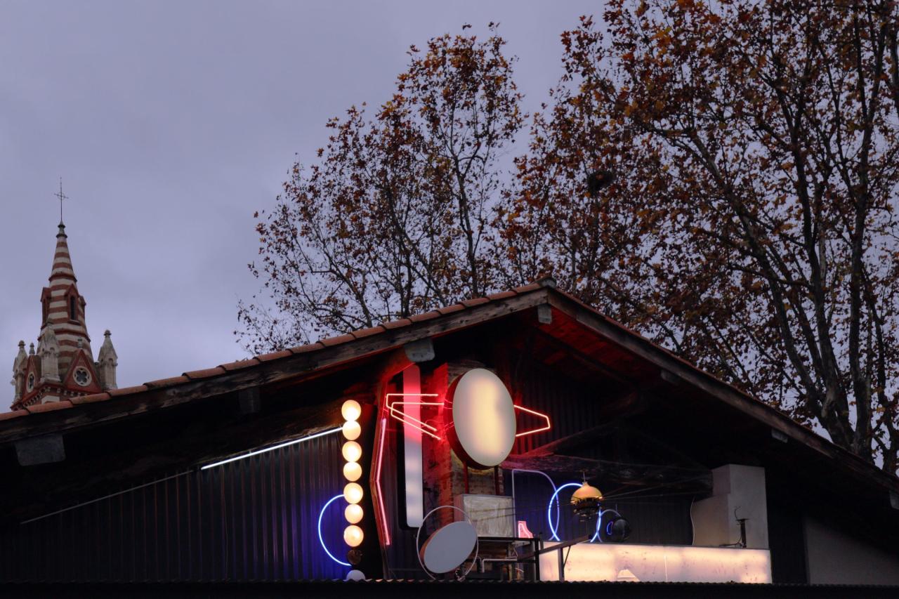 Signal est un assemblage de néons et d’éléments d’enseignes récupérés. Sur ceux-ci, le temps a lessivé les messages et seules demeurent des manifestations silencieuses et mutiques de lumière et de matériaux agencés entre eux. L’œuvre clignote, tournoie, fonctionne autant qu’elle dysfonctionne. Elle ne dit rien, elle n’est plus un message signalant la fonction d’un lieu ; elle est en revanche une œuvre intrigante – comme vivante et autonome – qui invite au regard, à la contemplation, puis, pourquoi pas, à franchir le seuil d’un lieu d’art, la Maison Salvan.