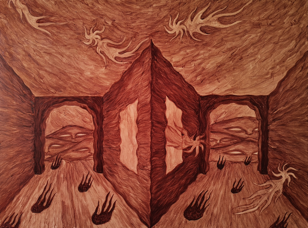 Feu liquide 2024 Sang humain sur toile60 x 80 cm © Adagp, Paris Feu liquide, 2024, Sang humain sur toile