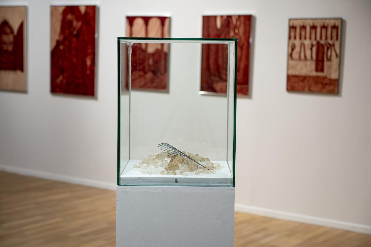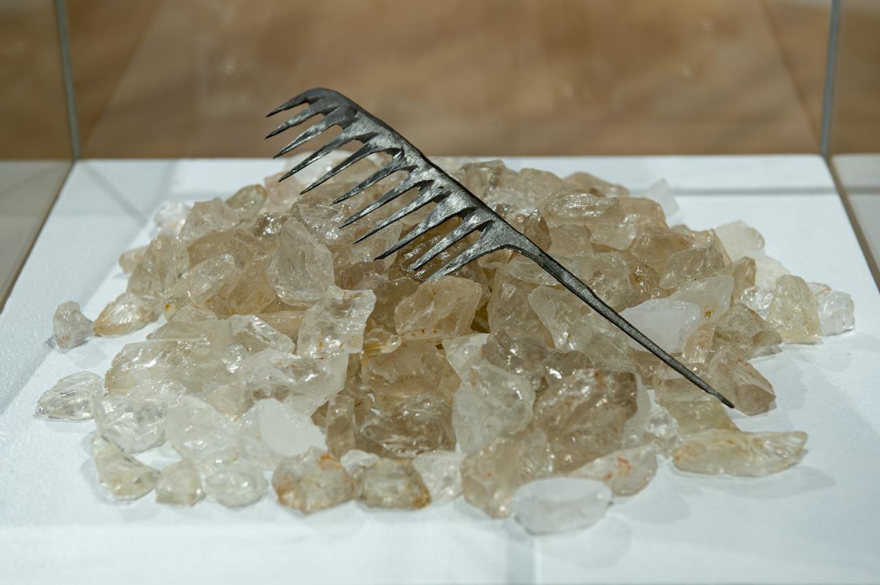 Peigne à dent de poignard, 2022, Fer et crystal de roche, vue de l’exposition collective Mezzanine Sud – Prix des Amis des Abattoirs, 2022, Les Abattoirs, Musée – Frac Occitanie Toulouse, Toulouse, détail, photo Franck Alix