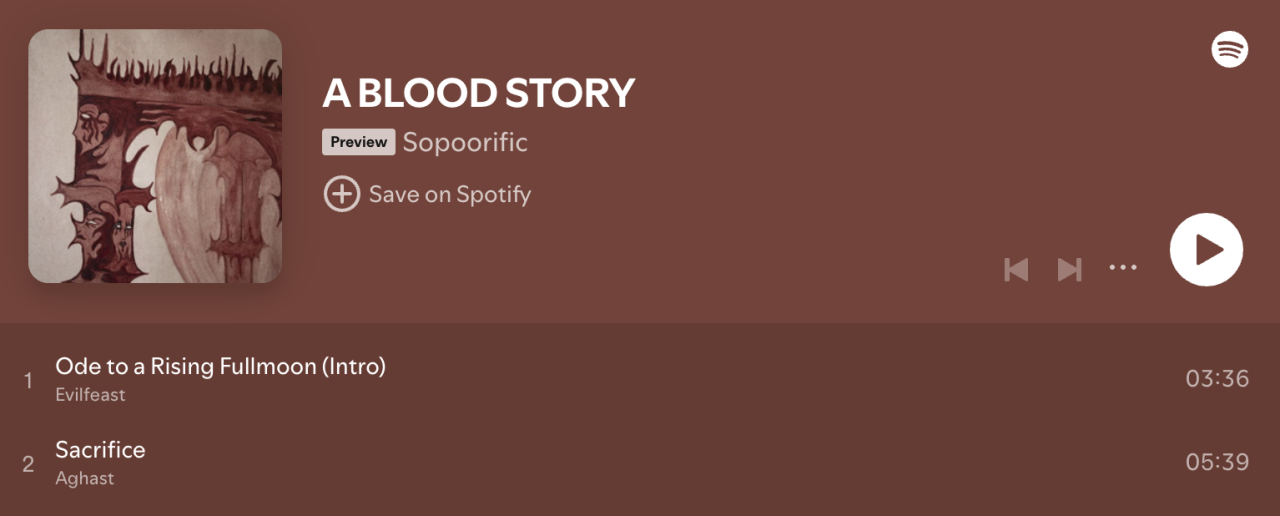 Playlist Spotify “A blood Story”, des morceaux qui inspire l’univers d’Alison Flora, en ligne.