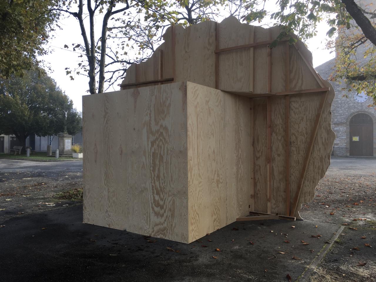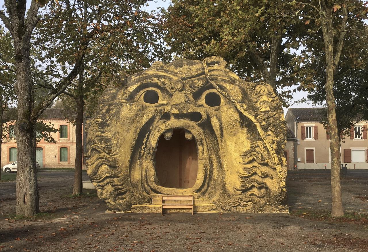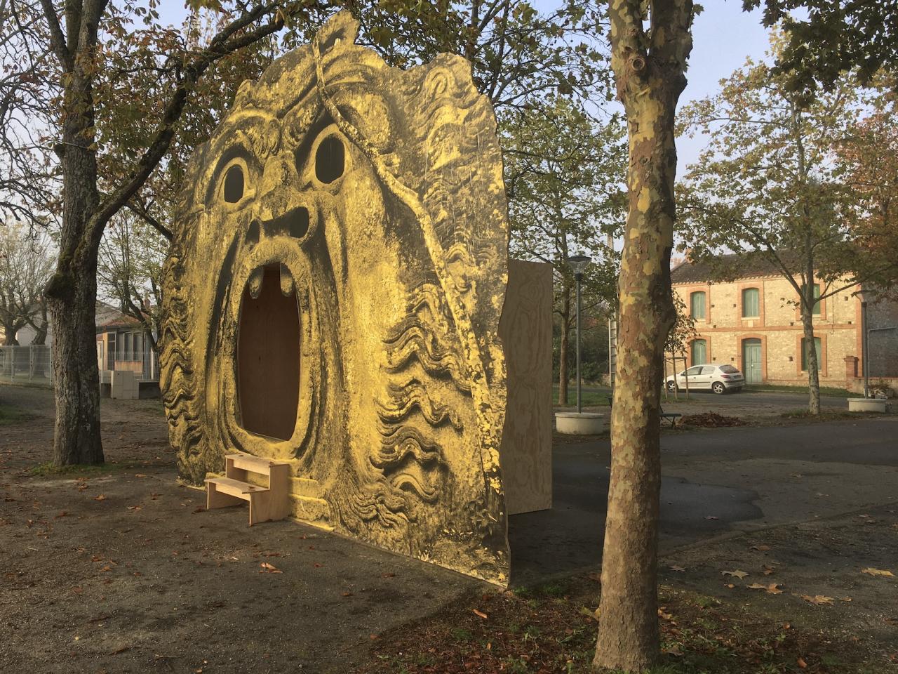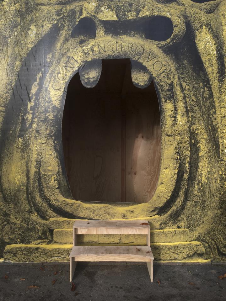 Ogni pensiero vola, 2020, contreplaqué, papier affiche, 600 x 450 cm, installation temporaire dans l’espace public, Viterbe, France