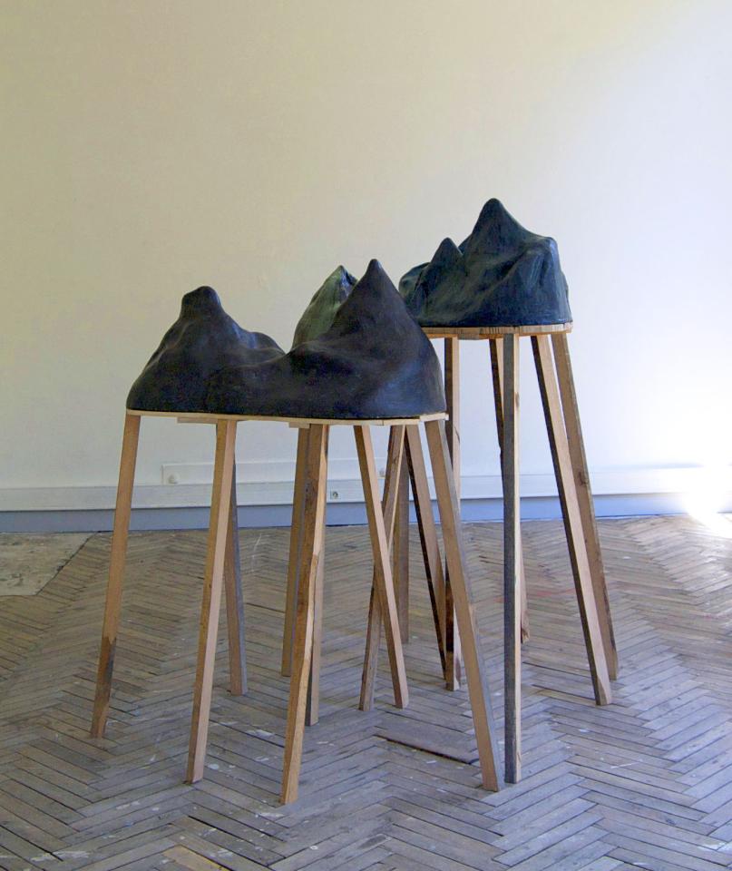 J’ai grandi sur l’Adret (le versant le plus ensoleillé de la vallée), regardant l’Ubac (le plus ombragé). Enfant, les montagnes me paraissaient un décor, un fond de scène peint. Et puis, comme la céramique monte à la température de la lave, ça a paru la chose à faire, construire un paysage de cailloux artificiels.