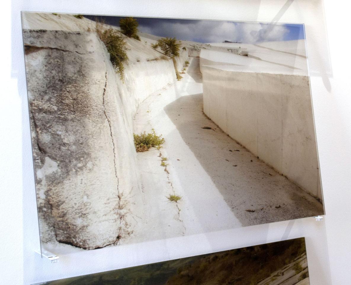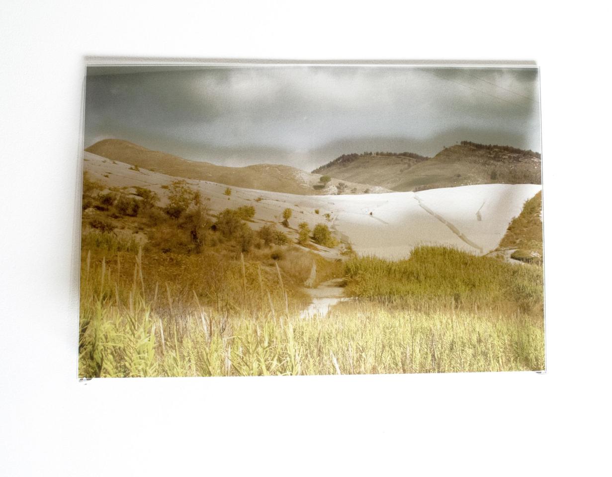Défaillances, 2020, tirages sur verre synthétique, 40 x 60 cm chacun, vue de l’exposition personnelle La Résilience des Lieux, La Chartreuse, Villeneuve-lez-Avignon, invitée par le Frac Occitanie Montpellier, commissariat Céline Mélissent, détail.