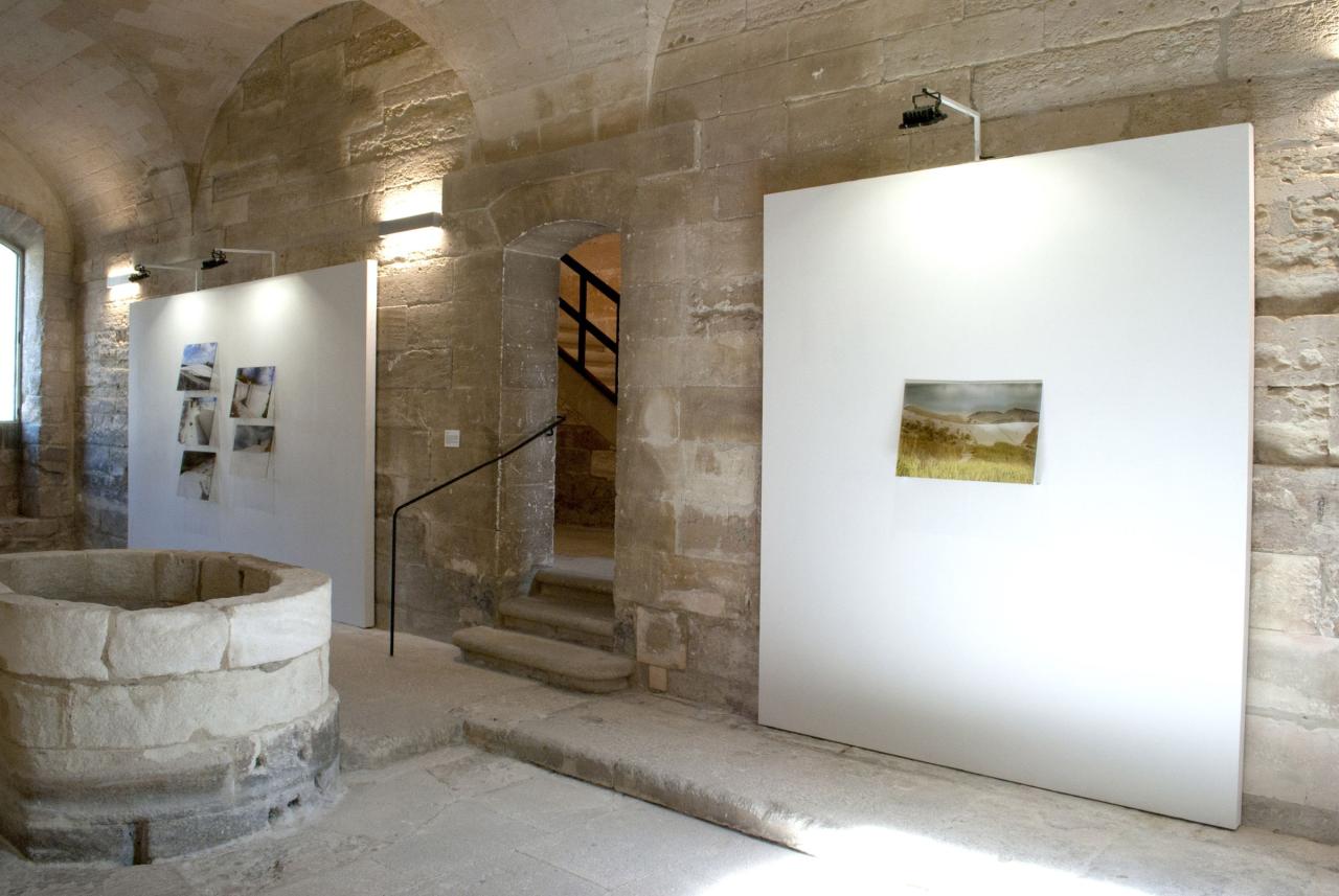 Défaillances, 2020, tirages sur verre synthétique, 40 x 60 cm chacun, vue de l’exposition personnelle La Résilience des Lieux, La Chartreuse, Villeneuve-lez-Avignon, invitée par le Frac Occitanie Montpellier, commissariat Céline Mélissent