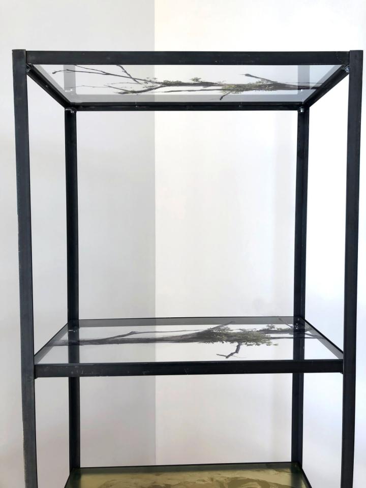 Leur verticalité s’allonge en silence sur les plaques en verre, telles des archives photographiques d’un paysage en transformation.