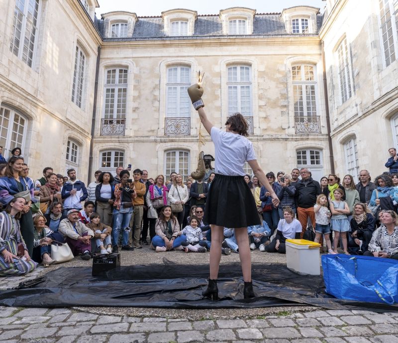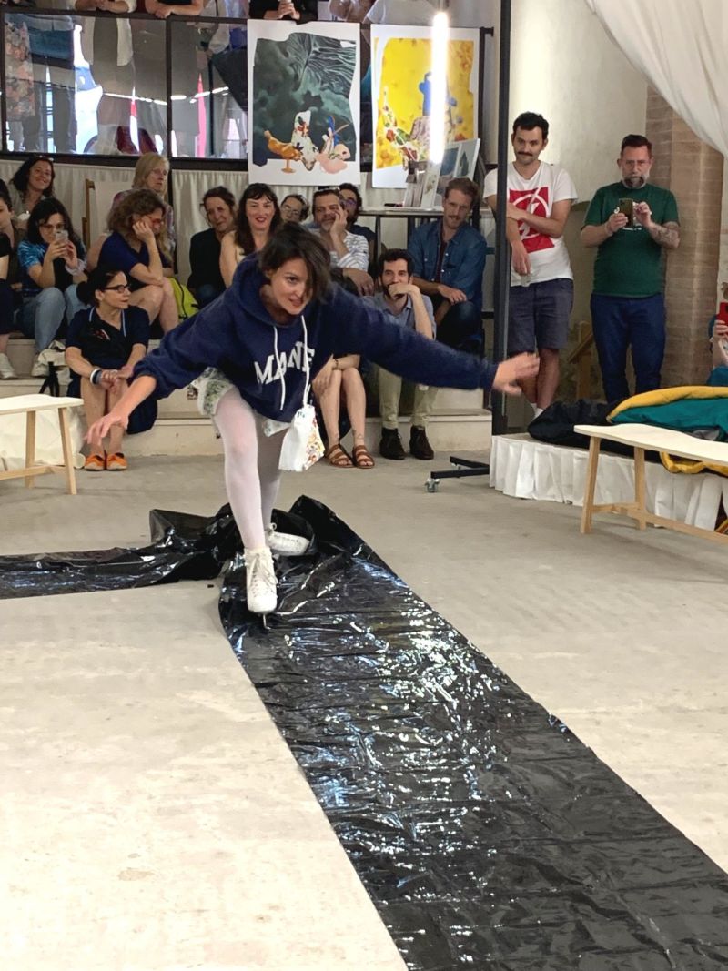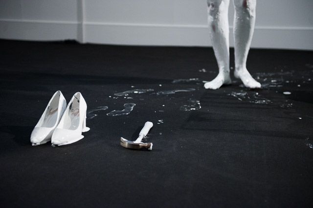 La nature de la performance, ses accointances avec l’art vivant, ses codes et tout particulièrement les objets avec lesquels elle naît et par lesquels elle est conservée sont autant de sujets de réflexion profonde qui traversent la démarche d’Émilie Franceschin.
