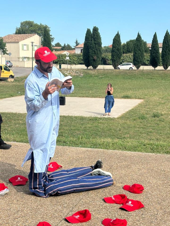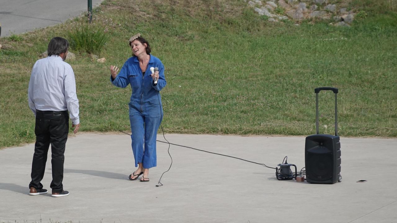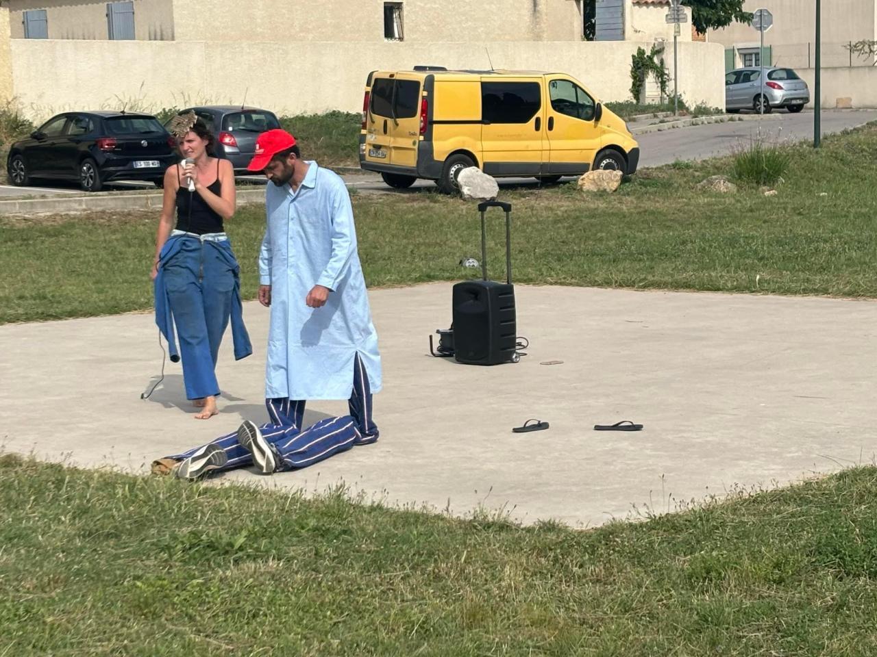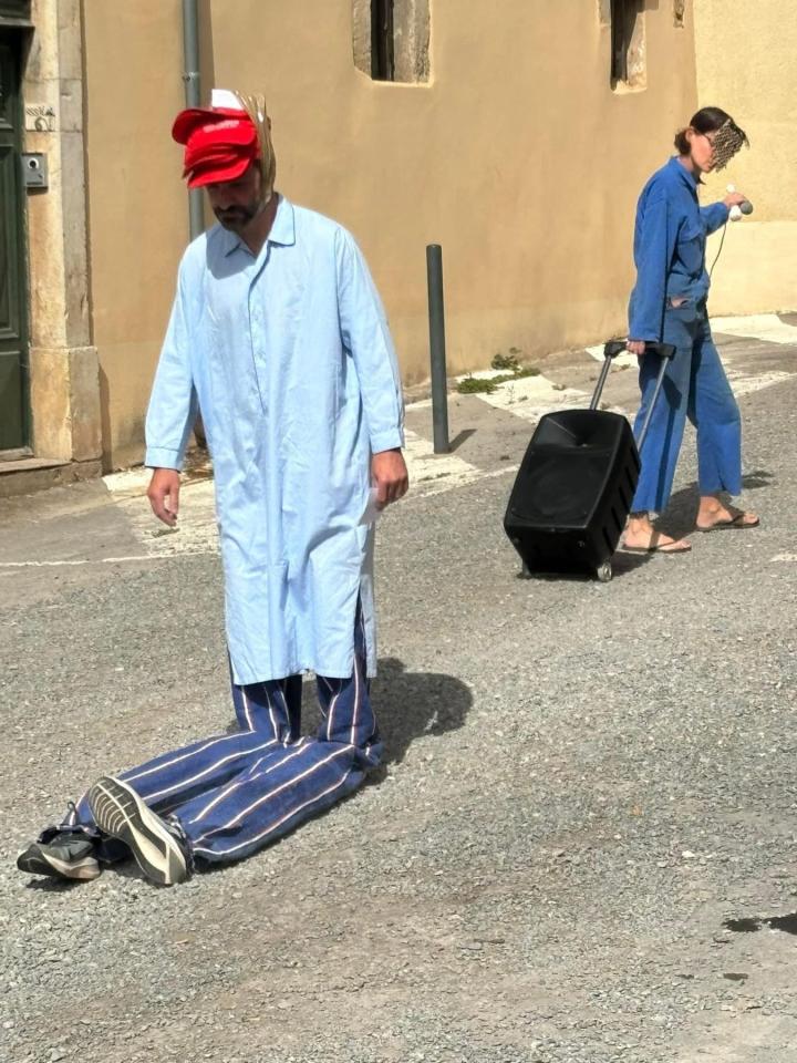 Cette performance, réalisée un jour d’élections entre l’espace d’exposition et le bureau de vote dans le village de Loupian, a été l’occasion de questionner le public, y compris le maire au sortir du bureau de vote, autour des inégalités et de la lutte, nécessaire, pour les combattre.