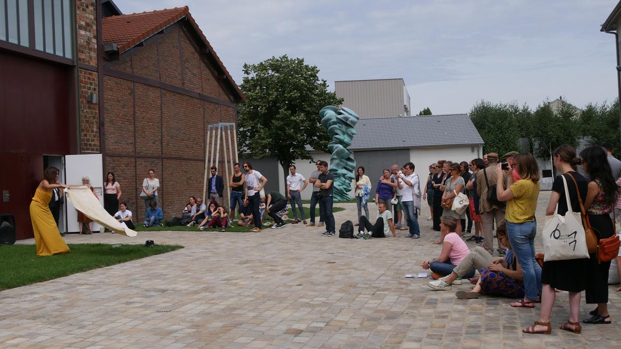 Le Déjeuner sur l’herbe, 15 juillet 2017, performance, 16 minutes, Galerie Thaddaeus Ropac, Paris, dans le cadre de Jeune Création, photo Chloé Salesse