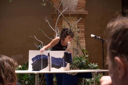 Émilie Franceschin, Tu ne te souviendras pas #4, 2024, conférence-performance, Salon des éditons d’art en Occitanie, Toulouse, photo Coralie Cruchet