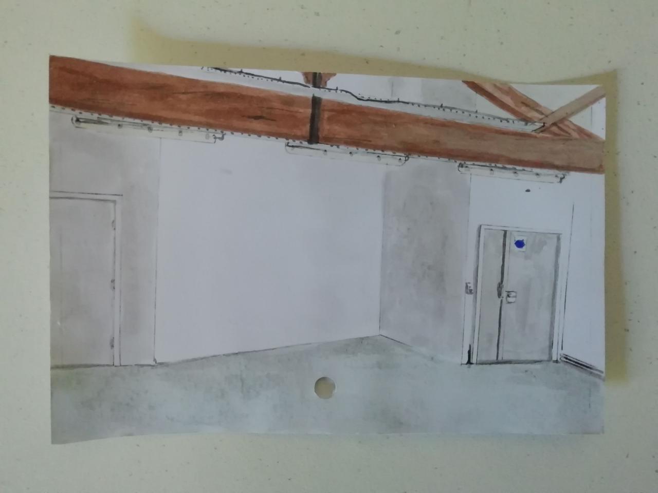 - Croquis d'Emmanuel Simon de la salle 301 d'après les photographies d'Aurore Clavier