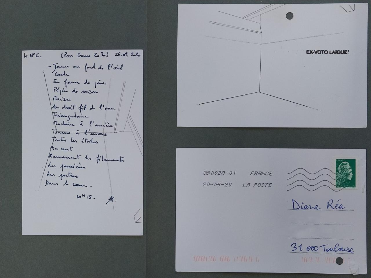 Durant le Grand confinement les conversations et échanges se multiplient et se diversifient dans le groupe de recherche : d’abord par visioconférence, chat, téléphone, courriel puis par courrier l’été : passant de l’instantané au différé, du temps court au temps long, changeant de vitesse, de milieu, de support. Anne Jourdain, chargée de conservation, archive méthodiquement nos échanges, désormais inventoriés.