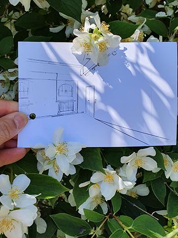- Emmanuel réalise plusieurs croquis de l’espace, les scanne et les envoie au groupe.