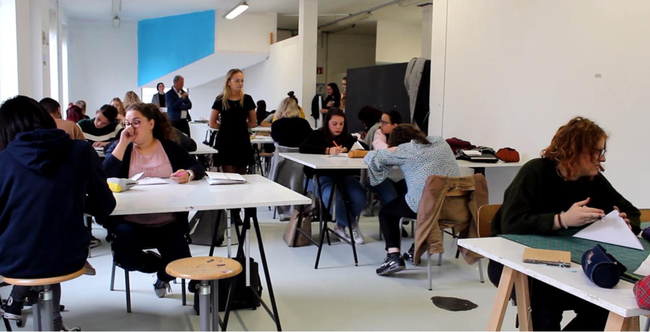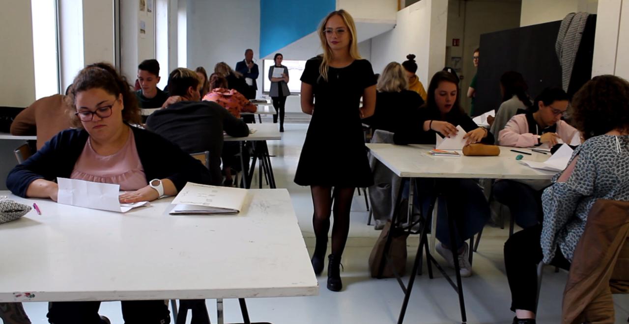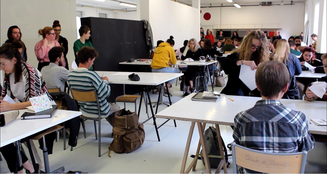 Mélissa Godbille, Léa Devenelle, Lucie Herlemont, Elisa Masson, Dictée, 2018, performance à l’École supérieure d’art et de design de Valenciennes