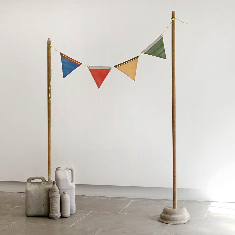 ¿Donde está la fiesta?, 2021, béton, céramique, manches à balai, ficelle