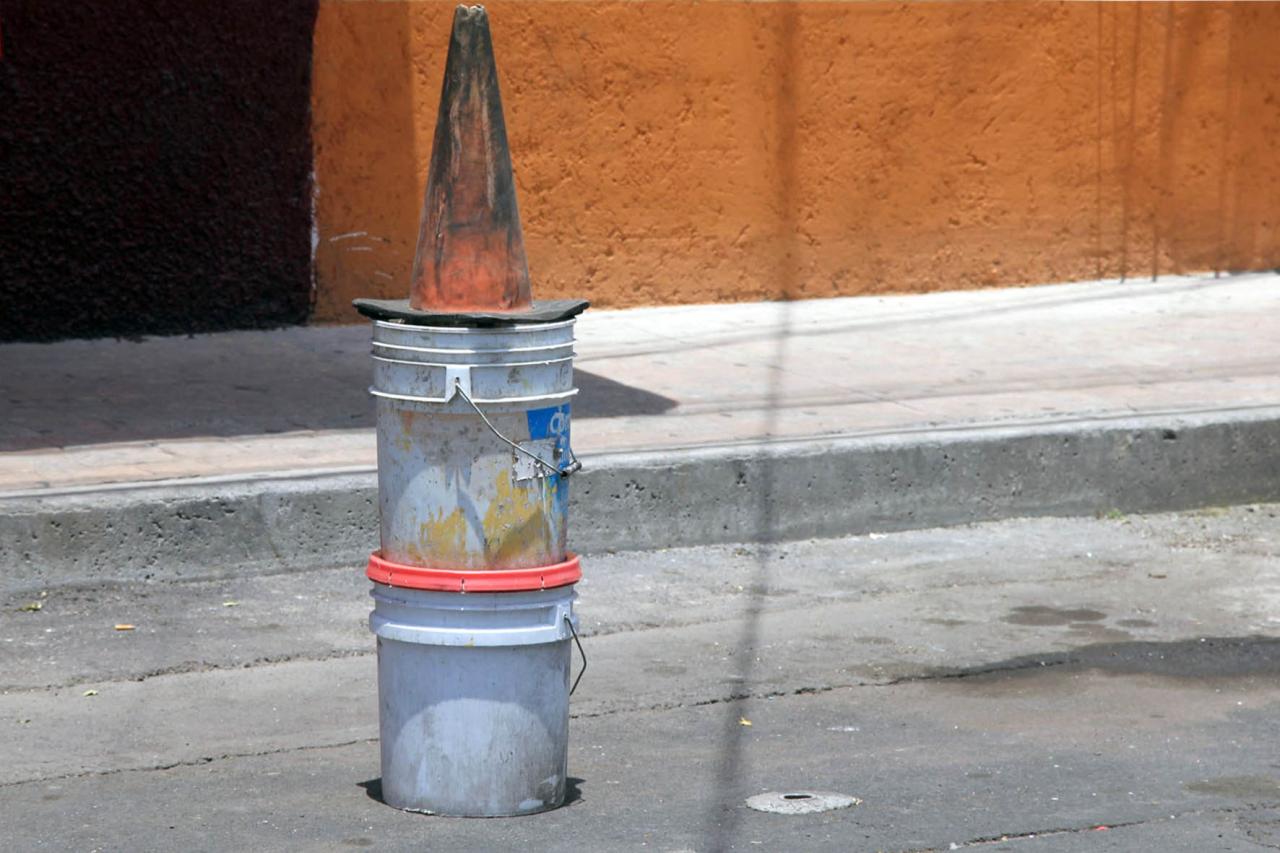À Mexico, dans les rues vouées au commerce du centre historique et du quartier de la Merced, une pratique se répète avec une grande fréquence. Des objets ou des constructions minimales se trouvent déposés au bord du trottoir de façon à empêcher le stationnement des voitures. Ces dépôts sur la voie sont si nombreux et si variés que j’ai pu les photographier sous le mode de la collecte ou du catalogue. Interpelée par leur aspect de sculpture improvisée et urbaine, faites d’objets ou de matériaux sans valeur, j’ai supposé que c’étaient les commerçants ou les artisans qui s’approprient de cette façon une partie de l’espace public pour que l’entrée de leur magasin ou de leur atelier reste visible et accessible. Mais cette pratique n’est pas seulement le fait du voisinage, elle est surtout celui d’une organisation globale connue sous le nom de sa main-d’œuvre, les « viene viene ». De cette manière officieuse, bien que complètement assimilée dans la culture de la ville, des emplacements sont réservés pour contrôler et monnayer le stationnement des voitures. Par ailleurs et en conséquence, les habitants des quartiers plus résidentiels se livrent à la même chose, pour garder leur place de parking devant chez eux, mais aussi, comme les commerçants et artisans, pour empêcher les “viene viene” d’occuper la place. Cette série, motivée au départ par la forme plastique d’un usage de l’espace public et sa pratique par ses citoyens, s’est précisée en intégrant cette autre dimension, délictueuse et stratégique, à priori mystérieuse pour un étranger. Elle témoigne finalement d’une forme de lutte codifiée pour un territoire et de la multiplicité de ses signes. Le titre associe des mots français et la ponctuation interrogative espagnole.