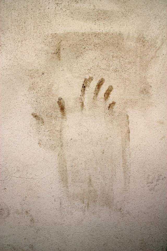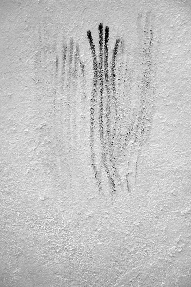 C’est dans le quartier ouvrier et populaire d’Ajuda à Lisbonne que j’ai tout d’abord arrêté mon attention sur le fait que des gens essuient leurs mains salies sur les murs, produisant des traces que j’aime photographier. J’ai continué à collecter ce genre de traces à Montpellier, aux abords du chantier de la nouvelle ligne de tram, puis à nouveau à Lisbonne. L’impression des images dans un format propre à chacune restitue les traces dans une taille proche de l’échelle 1. Ce travail fait référence à des notions telles que l’usage de la rue, l’art non intentionnel, le travail ouvrier, la main positive et la “dé-situation”.