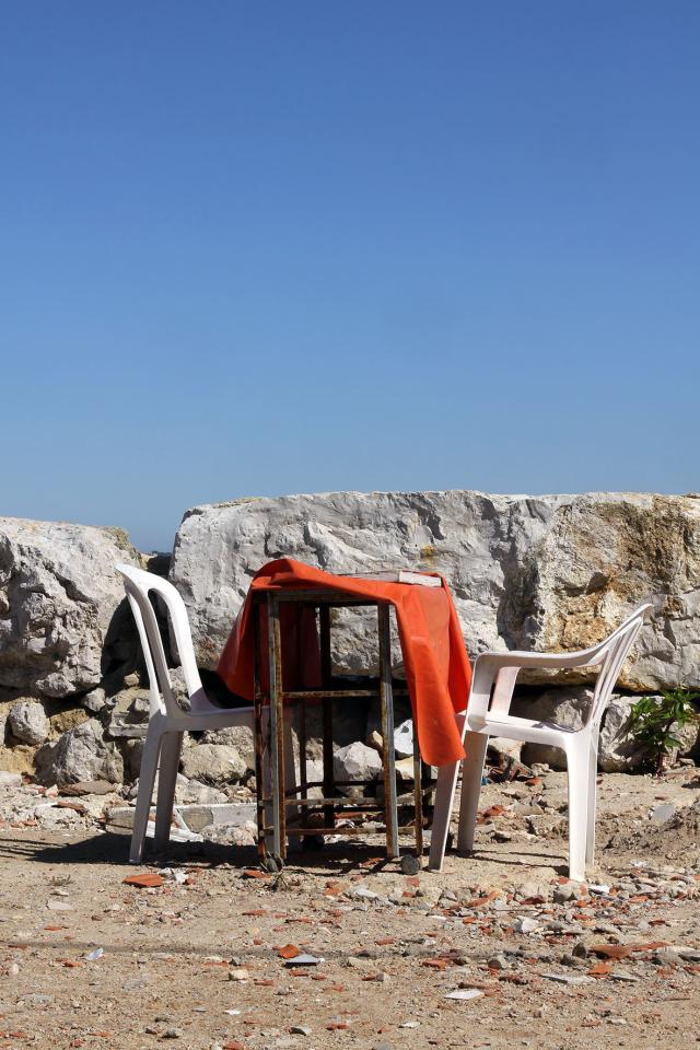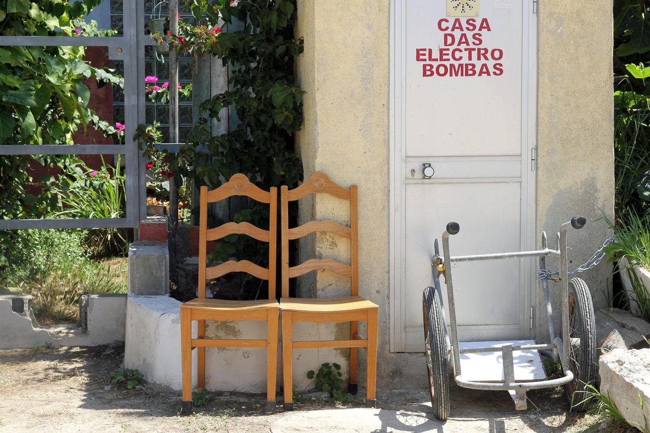 Cet ensemble de photographies prend pour motif la chaise dans l’espace public, à partir de Cova do Vapor (micro-village de pêcheurs autoconstruit, situé sur la pointe où le Taje rencontre l’océan Atlantique) et jusqu’à certains endroits de Lisbonne (quartiers ouvriers populaires des hauteurs de Belem et d’Ayuda). De Cova à Trafaria (point d’embarquement pour traverser le Taje), entre le bord de l’eau et la route principale, s’étend une zone vague de campements et d’habitation précaires (Torrão 2 et São Pedro de Trafaria). Le lond de ce trajet, dans les images que j’en ai faites, ces situations de chaises affirment une idée : prendre sa place quelque part dans un monde qui ne nous en fait pas, où l’on peut et comme on peut, mais de façon précaire mais résistante. Au-delà de signifier l’occupation d’un place personnelle dans l’espace public il y a l’acte collectif de prendre sa place au moyen d’un habitat improvisé. Que cela soit avec les maisons construites les unes sur les autres dans une territoire réduit par l’avançée de l’eau, et au départ sans droit, par les pêcheurs de Cova eux-même, avec le bidonville de Torrão 2, entre pinède et décharge sauvage, avec les constructions précaires de São Pedro de Trafaria, ou avec l’occupation de l’habitat disparate et en réhabilitation des quartiers des hauteurs de Belem, à Lisbonne. La collecte de ces images de chaises est aussi une façon de dessiner, avec ce motif réccurent, un ensemble qui relie divers endroits d’une zone vague et qui évoque une présence humaine en relation avec un environnement social et un paysage.