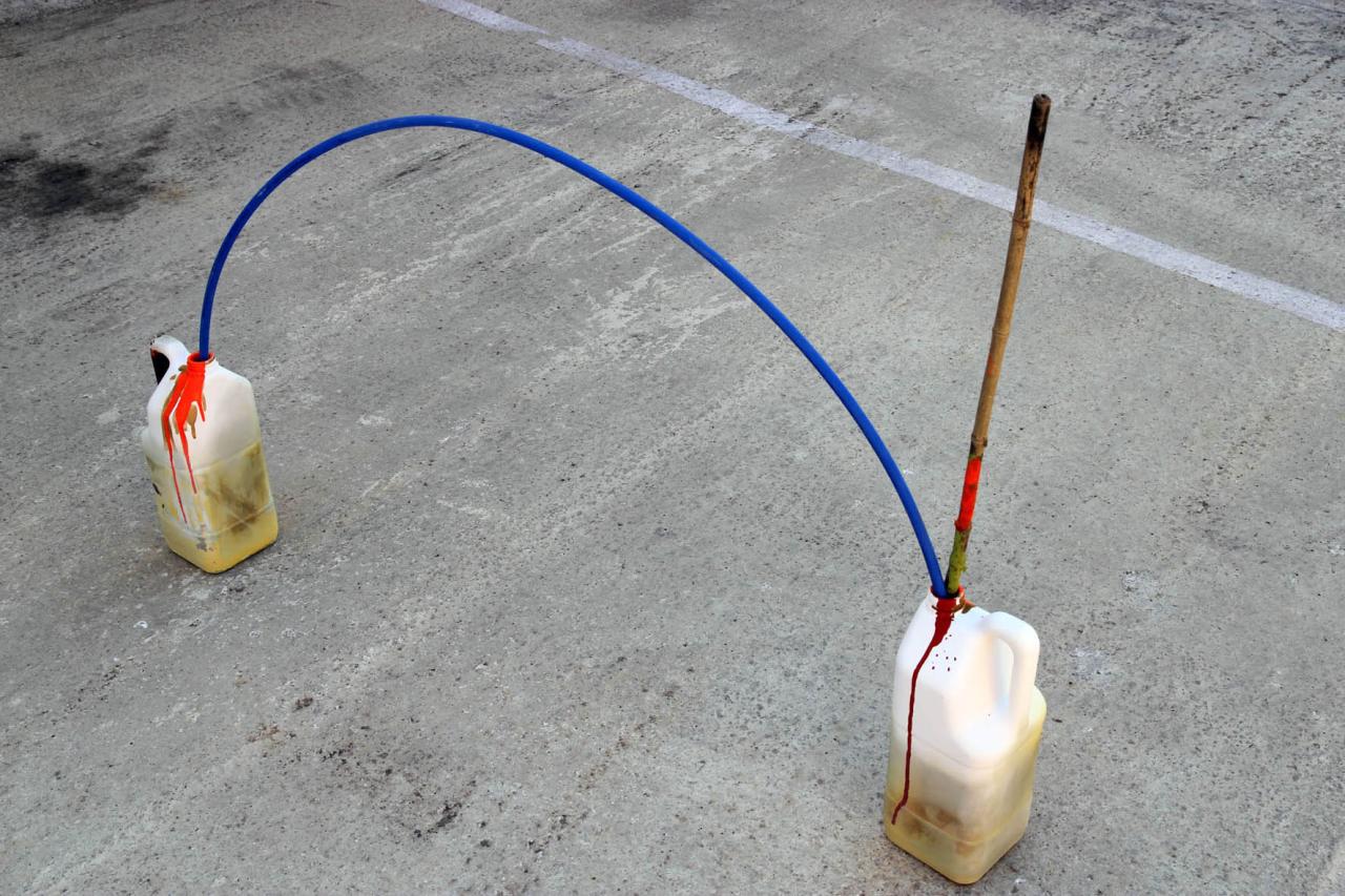 Apartalugar bidon, 2018, céramique et techniques mixtes, 50 x 120 x 75 cm, réalisé dans le cadre d'une résidence à Artelinea