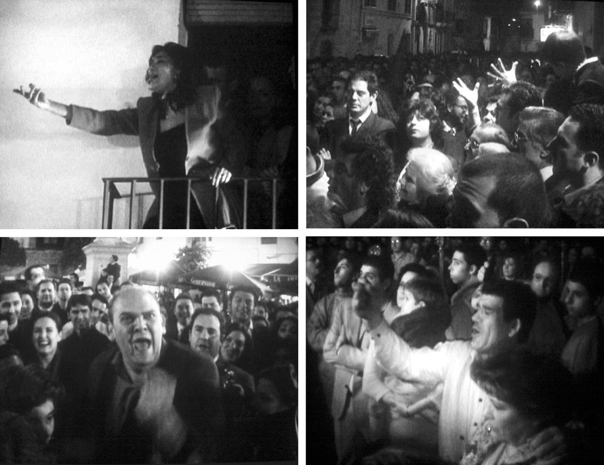 Parmi les œuvres exposées ici, celle d’Agnès Fornells matérialise cette aporie de l’amour à la mort d’une manière littéralement inouïe. Son film Viva la Saeta est un hymne au chant. Pendant une douzaine de minutes, disséminés dans la foule qui assiste aux processions de la Semaine Sainte, des chanteurs improvisés se lancent, chacun à leur tour, dans une interprétation virtuose. L’amour de l’art musical éclate de bouche en bouche ? curieusement, il faut attendre un certain temps avant de réaliser qu’on n’entend rien. Ce film muet prend le risque de frustrer une attente de plaisir en tuant le son. La mort de l’ouïe porte à son comble l’amour visuel du chant, comme si, seul, le silence était à même d’entraîner à son plus haut degré la beauté d’une voix.