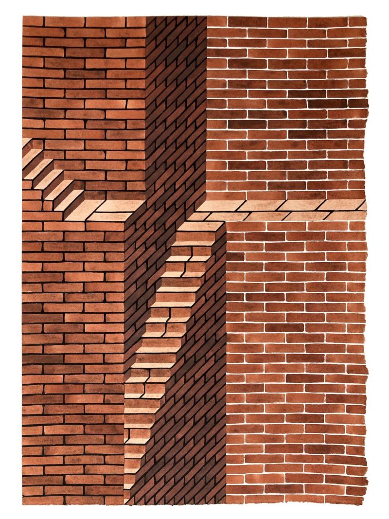 Inlassablement je peins des briques à l’aquarelle. Pourquoi ? Je pense aujourd’hui ne plus vouloir savoir. Est-ce un désir, une pulsion, une nécessité, un défouloir, une contrainte ? Ou une habitude. (…)