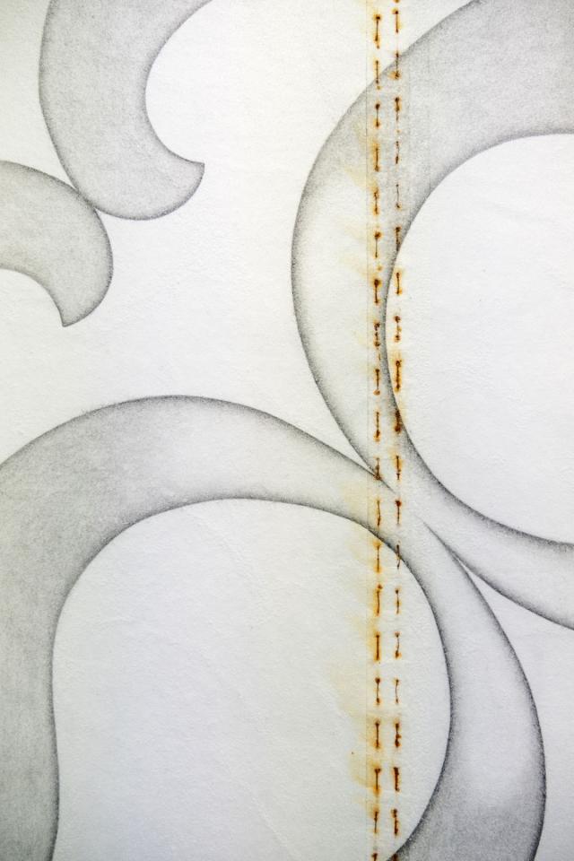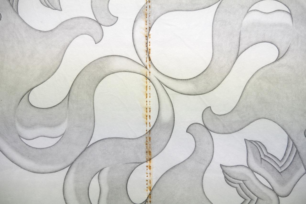 Protest Sign (Symbiosis), 2024, dessin au graphite sur papier de mûrier cristallisé, fil de cuivre cousu, 210 x 180 cm, détail