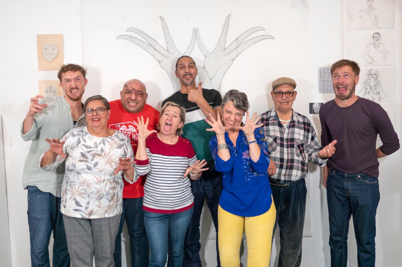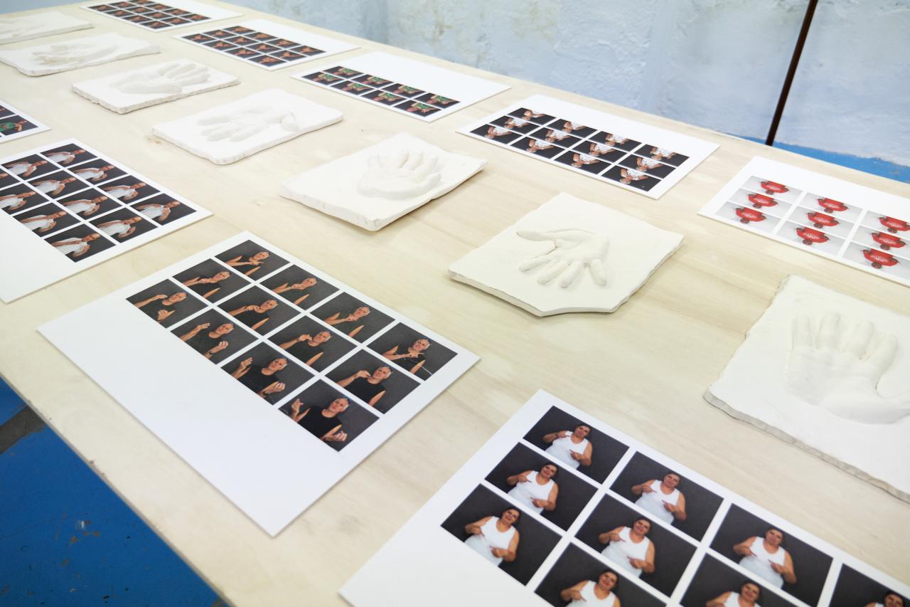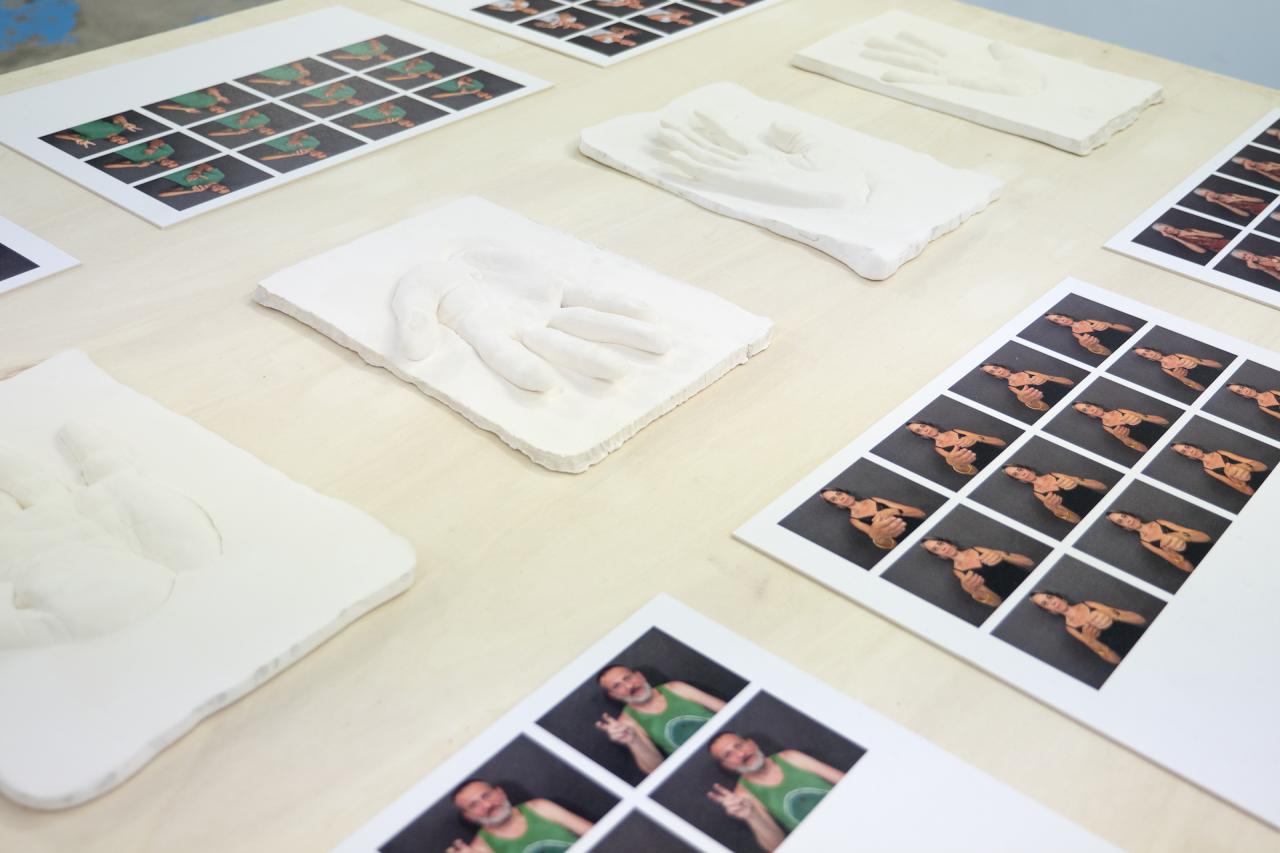 À partir d’expériences vécues et d’histoires personnelles, les participant·es ont été invité·es à les explorer en leur donnant des formes poétiques à travers différentes pratiques artistiques employées dans le travail de Geoffrey comme le dessin, la décalcomanie, le moulage, la vidéo et la photographie. Les récits de chacun·e ont servi de matière première pour faire - ensemble - quelque chose avec les mains.