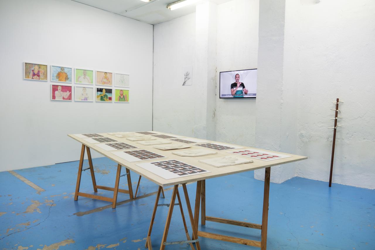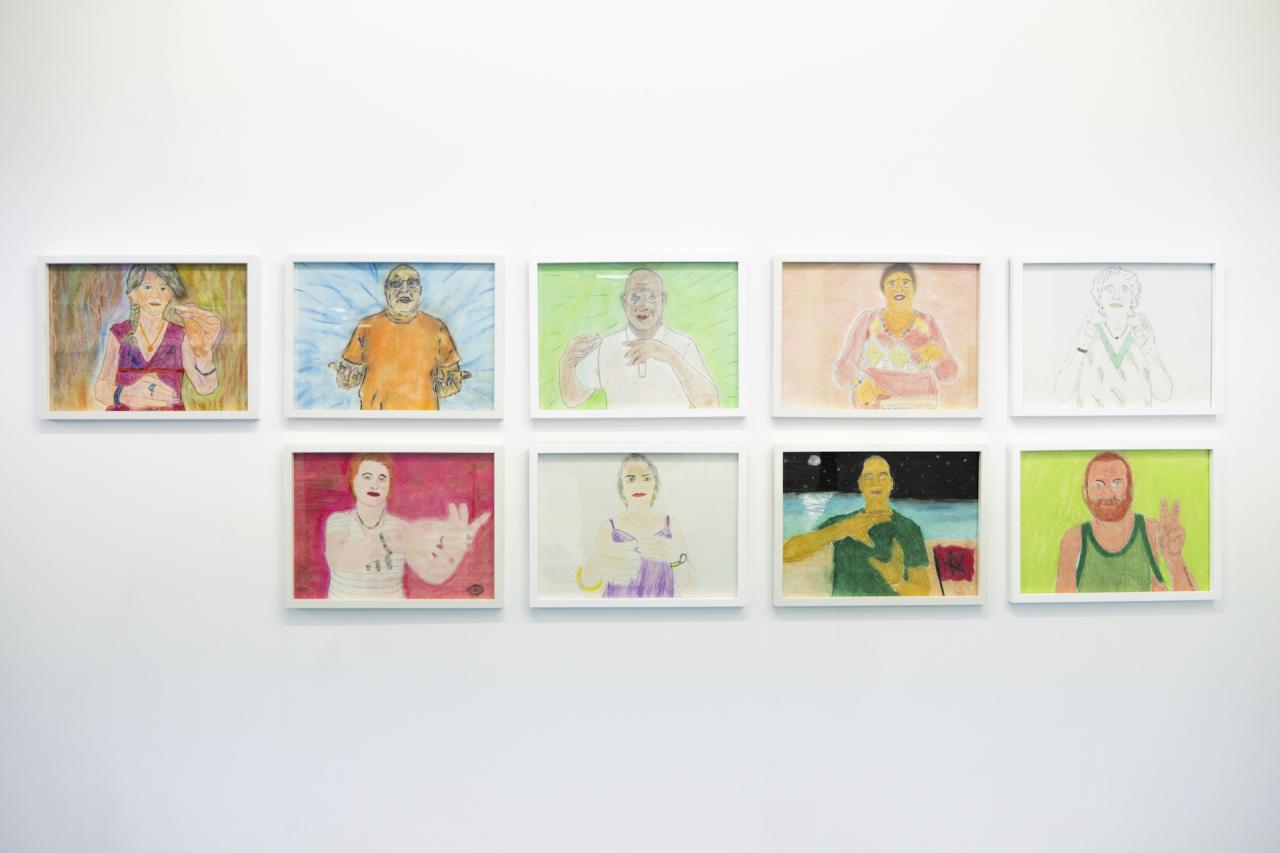 Ces rencontres et ces échanges ont enclenché de nouvelles réflexions sur le langage et la communication non verbale, des thèmes centraux dans sa démarche artistique. Il a donc créé en parallèle, une nouvelle série de dessins, cristallisés par le sel, de signes gestuels et énigmatiques ainsi que des portraits des participant·es en train de grimacer.