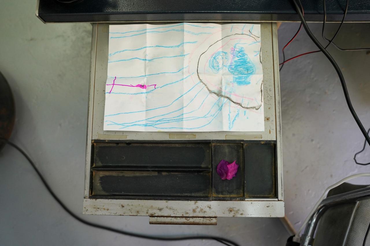 Même à l’autre bout de l’univers est pensée comme une suite des quatre expositions précédentes : L’odeur noire des idées roses, Des fleurs tissées dans le sable, Lisières Hybrides et Dernière brise, l’horizon des événements. Ma future exposition à Station V à Bayonne en 2024 sera probablement la continuité de cette exposition-ci. L’intrication quantique explique qu’il existe un lien invisible entre deux particules qui ont été émises en même temps, quelle que soit la distance qui les sépare ; si l’état de l’une d’elle se modifie, celui de sa jumelle change de façon similaire et instantanée, comme s’il s’agissait d’un seul et même système et ce, même si elles sont chacune à un bout de l’univers… J’imagine de la même manière ce lien invisible et cet état de dépendance entre mes expositions, comme je l’imagine aussi entre mes œuvres et les souvenirs, entre mes œuvres et les artistes auxquels je me réfère et ainsi de suite. D’autre part, je tisse un autre lien invisible, celui d’un dialogue avec mon fils, dont deux dessins ont d’ailleurs intégré cette installation. Il appelle les dessins qu’il m’offre des “cartes aux trésors” et réciproquement, je lui laisse des messages cachés dans chacune de mes expositions, qu’il pourra décrypter un jour. Je dévoile beaucoup en racontant cela… Je préfère véritablement que ces liens restent invisibles.