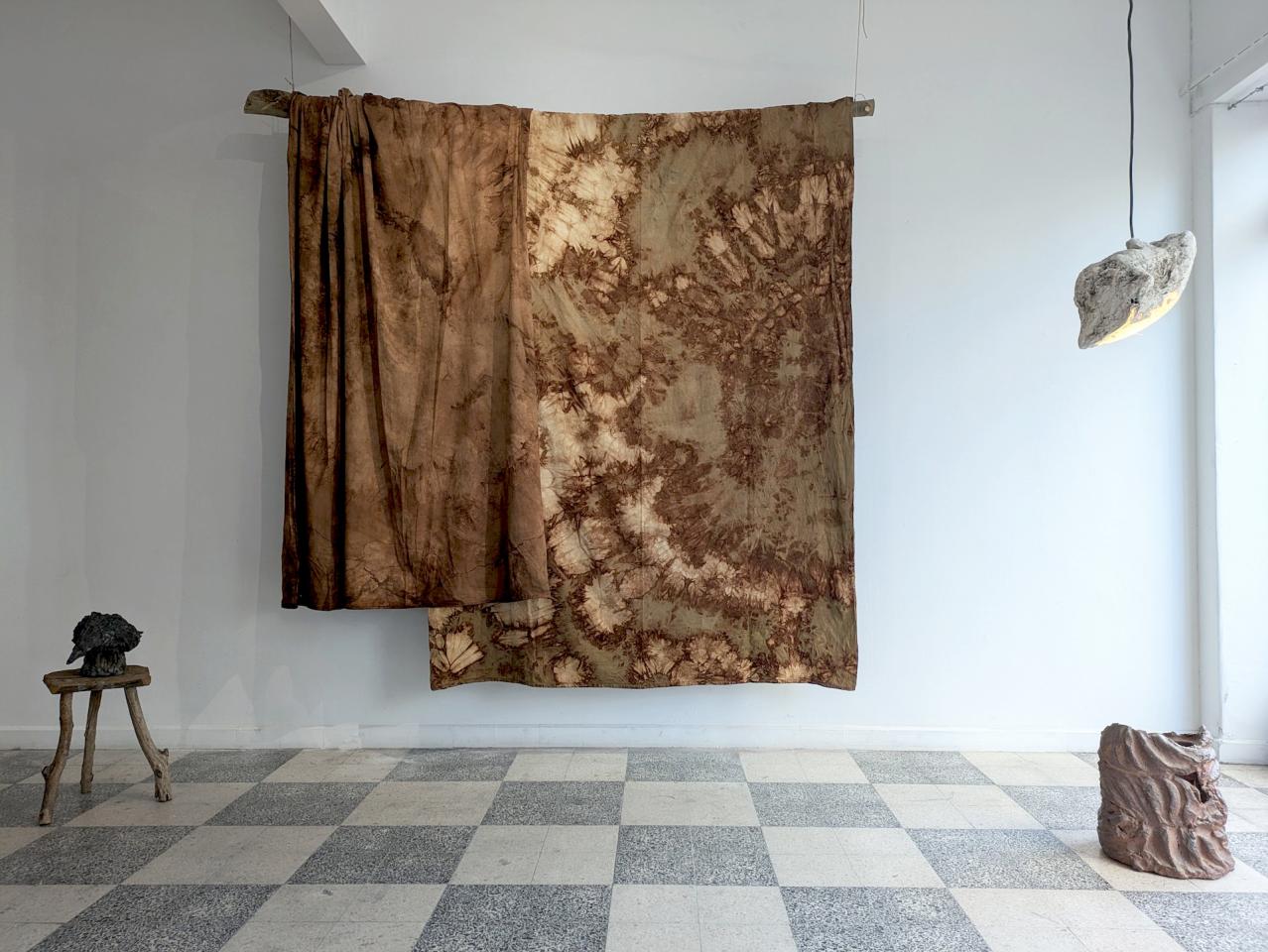 Etablis, Fût, Braîches, 2024, installation, vue de l’exposition collective Une sourde résistance, 2024, Salto, Lisbonne, Portugal