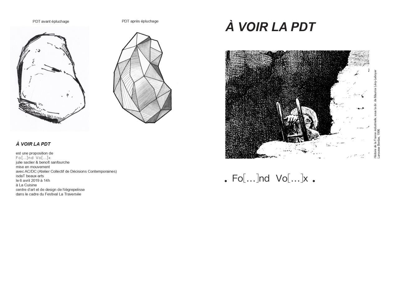 À voir la PDT, 2019, duo Fo[…]nd Vo[…]x (Julie Saclier & Benoît Sanfourche), livret