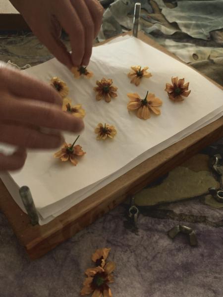 Par la cueillette, le glanage, la tenture végétale, le travail de Margaux Fontaine fait revivre les procédés traditionnels et le savoir ancestral lié à la connaissance de la terre, de ses rythmes et ses secrets.
