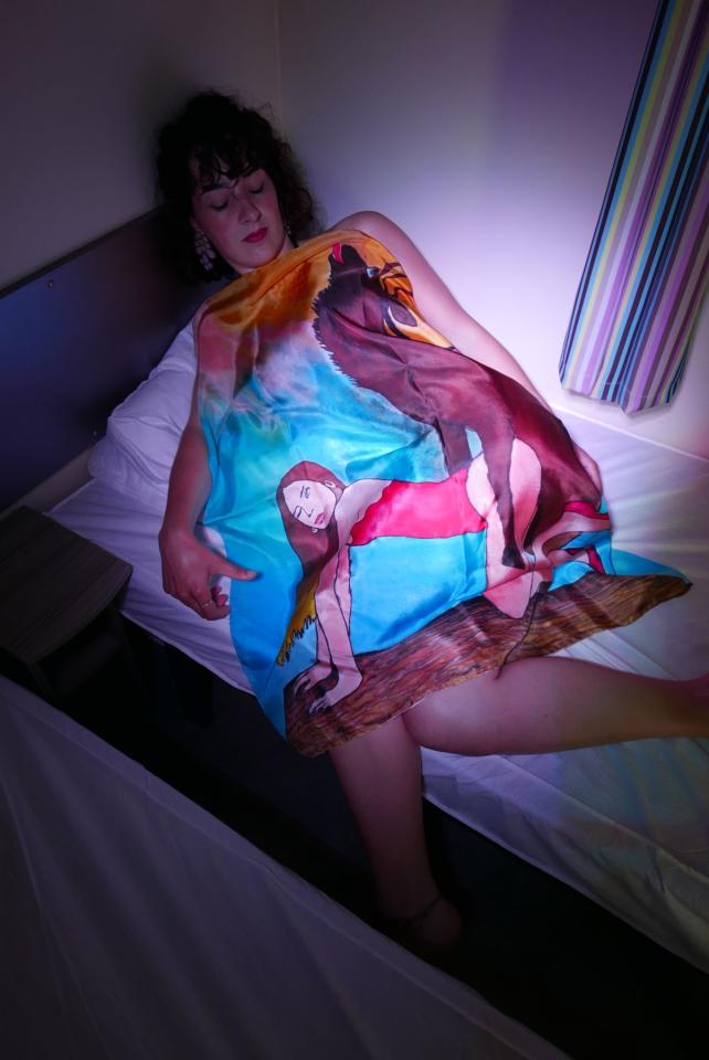 Défilé de soie, 2018, performance, dans le cadre de la sortie de résidence, Camping Le FUN, Fitou, 2019