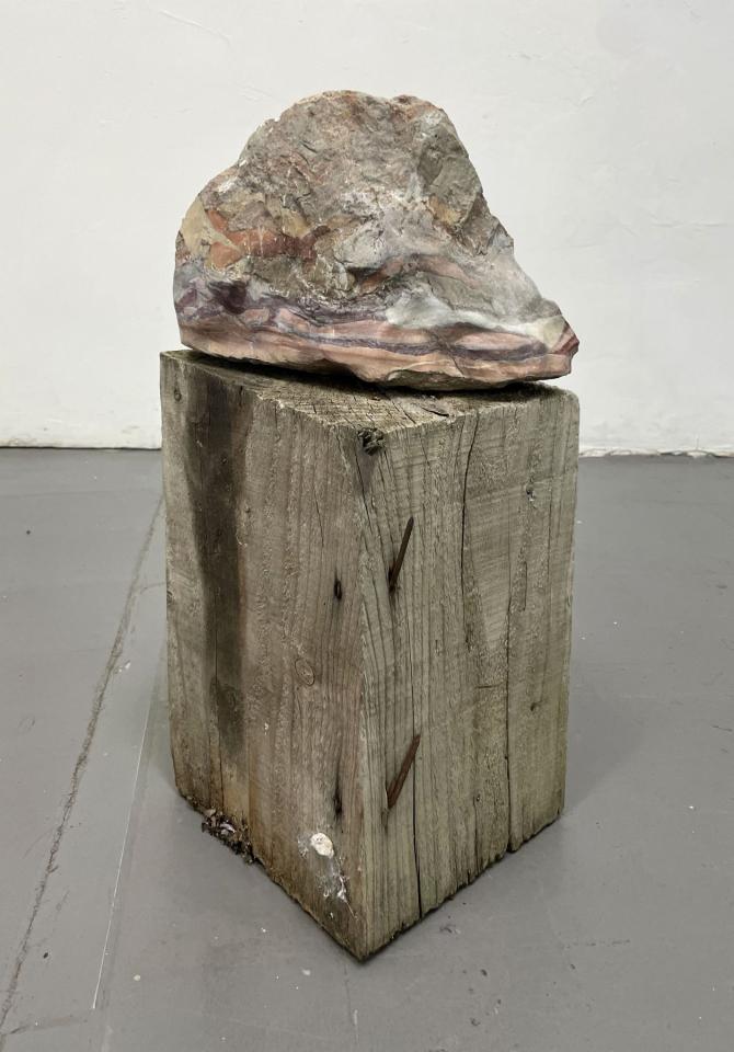 Pierre Caresse, 2022, marbre et bois, 50 x 20 x 20 cm, vue de l’exposition Con moto, 2022, Le Salon Reçoit, Toulouse