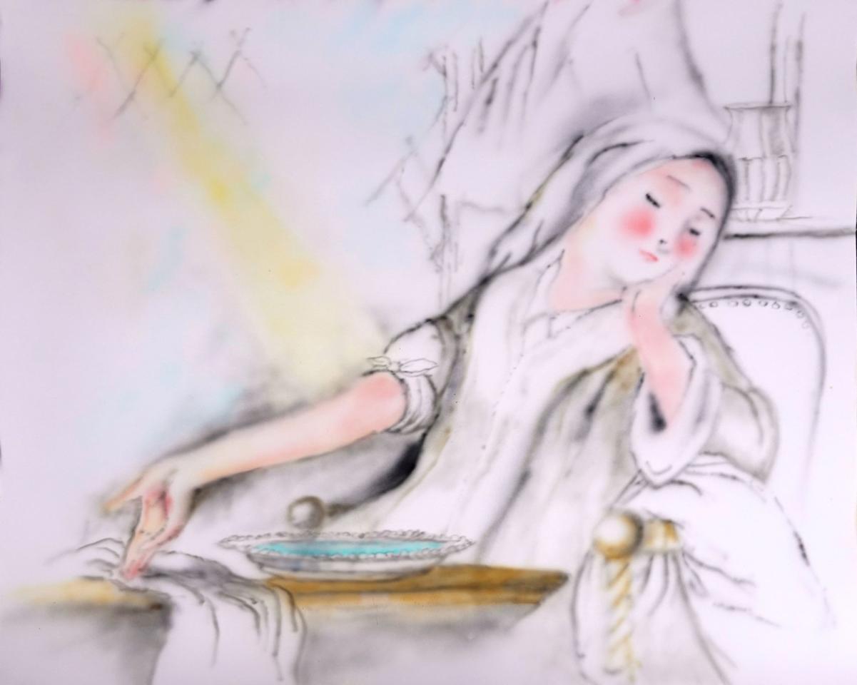 L’Annonciation, 2020, peinture acrylique sur papier, 124 x 152 cm, vue de l’exposition Con moto, 2022, Le Salon Reçoit, Toulouse, détail