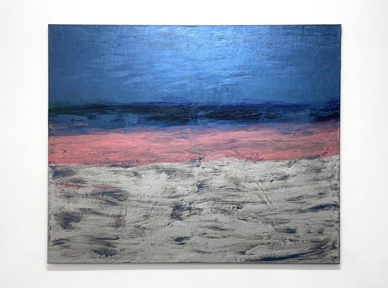 2 heures plus tard, 2022, peinture sur toile, 120 x 150 cm, vue de l’exposition Con moto, 2022, Le Salon Reçoit, Toulouse