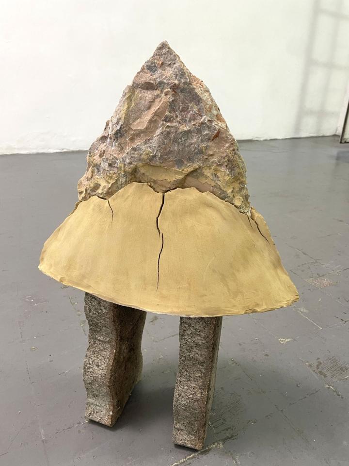 Sans titre, 2022, marbre, terre et béton, 50 x 20 x 30 cm, vvue de l’exposition Con moto, 2022, Le Salon Reçoit, Toulouse