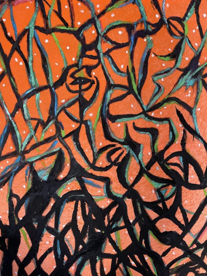 Chorus, 2020, peinture acrylique sur papier, 124 x 152 cm, vue de l’exposition Con moto, 2022, Le Salon Reçoit, Toulouse, détail