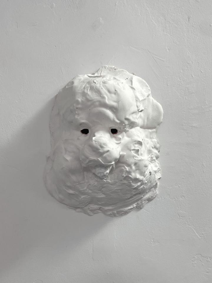 Tarte canin, 2022, plâtre, 25 x 20 x 5 cm, vue de l’exposition Con moto, 2022, Le Salon Reçoit, Toulouse