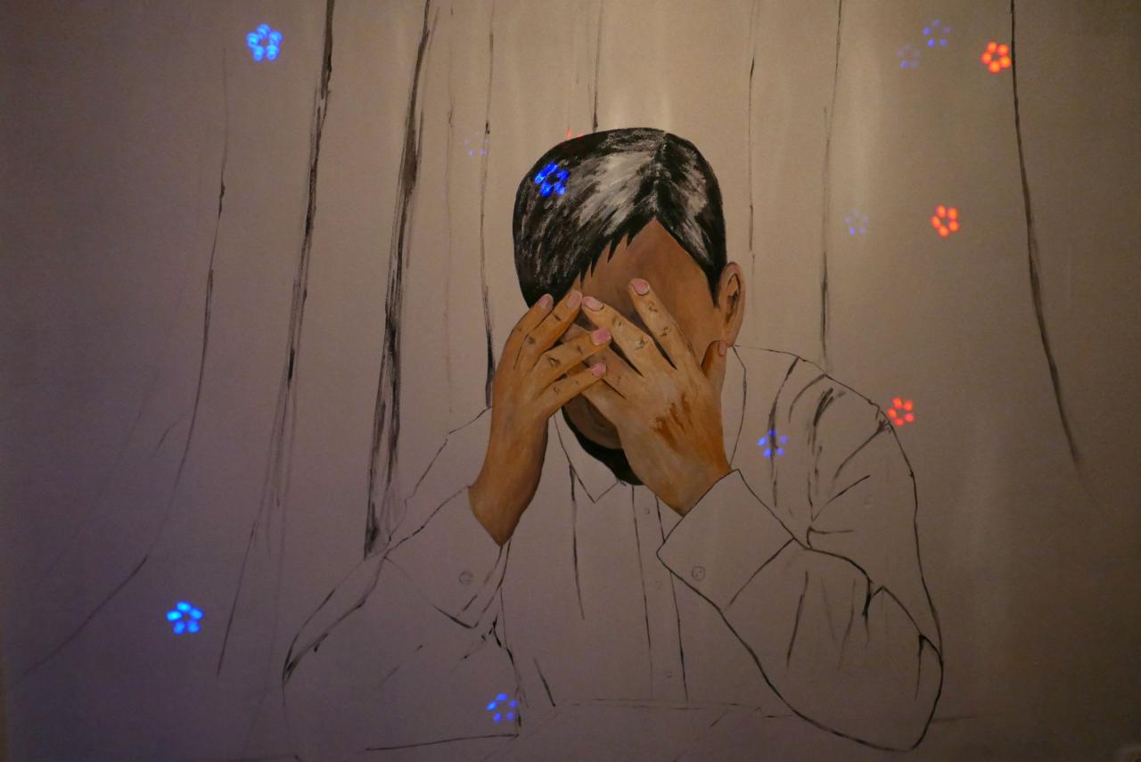 Sans titre, 2017, peinture acrylique sur papier, 70 x 50 cm, vue de l’exposition Déplacer la croûte, 2017, 19cannes, Toulouse