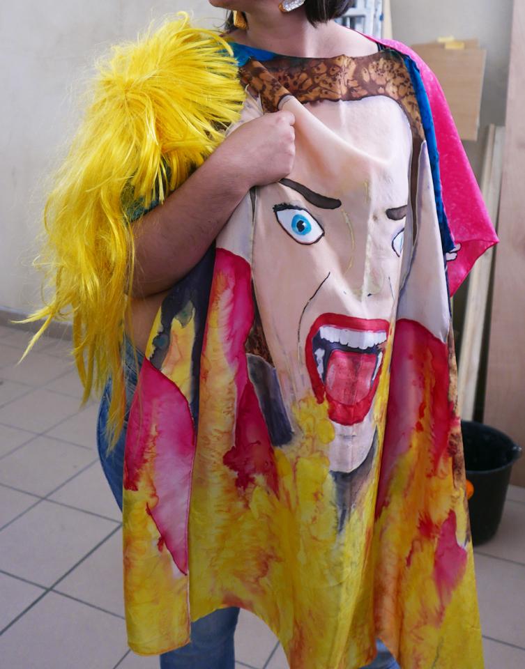 Salut, 2018, peintures sur soie, 110 x 90 cm, vue de l’exposition collective Vertiges Contemporains, 2018, Duilhac-sous-Peyrepertuse