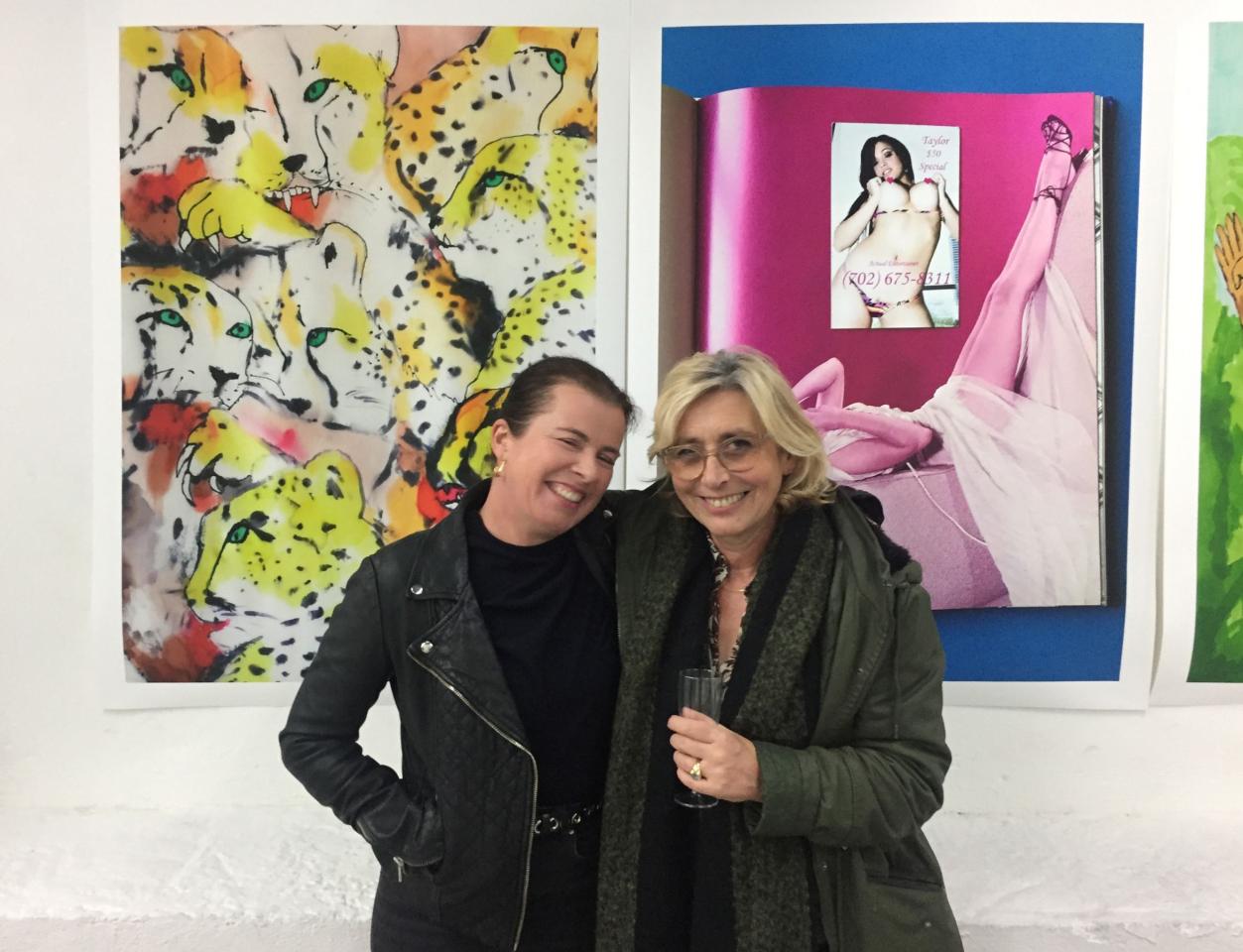 Vue de l’exposition collective Lapin-Canard #42, Lieu-Commun, artist run space, Toulouse, 2019, Marianne Plo et Béatrice Utrilla le soir du vernissage, photo Manuel Pomar